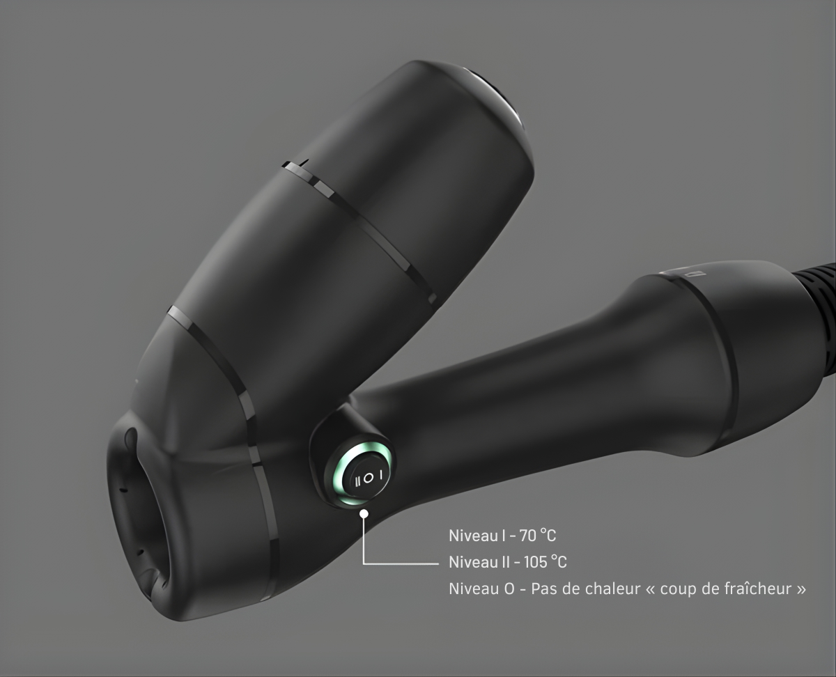 Sept réglages de tension adaptent le flux d'air aux besoins de votre type de cheveux pour une expérience de séchage optimale.